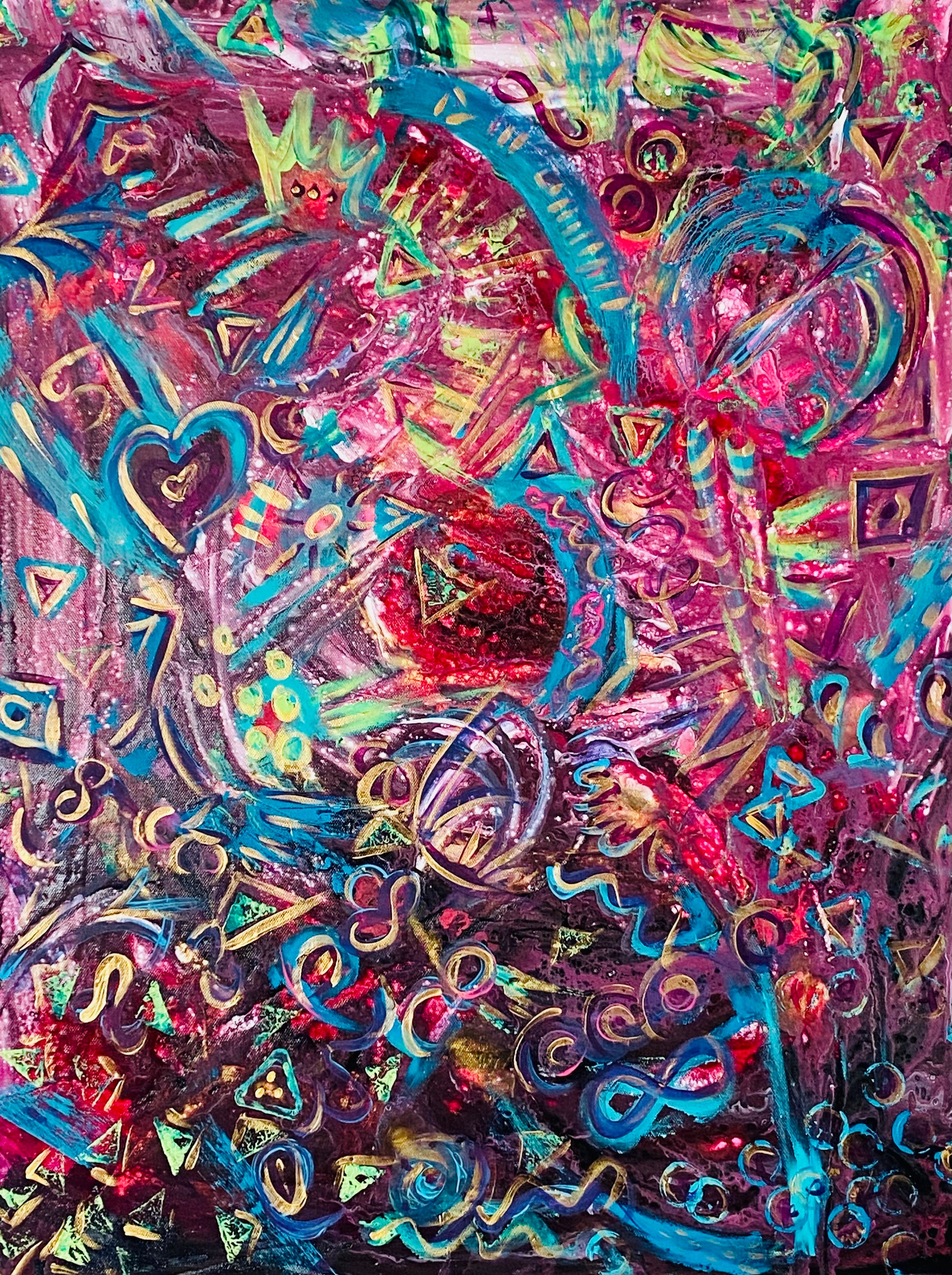 Another pour painting gone wrong before going right... I seem to enjoy making something more out of the basic pour painting concept. (photo enhanced to reflect gold features)